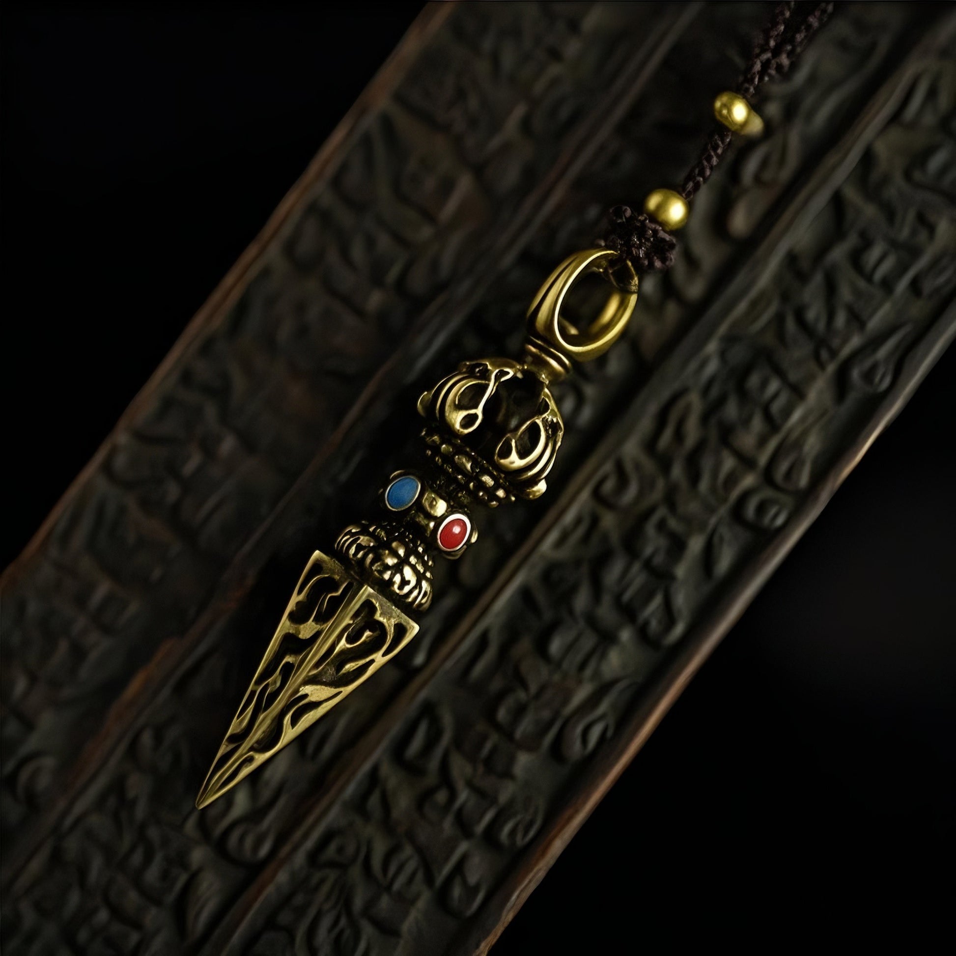 This Phurba Vajra pendant embodies the essence of Tibetan esoteric Buddhism. Its wrathful form breaks through obstacles and dispels demons, guarding the mind to be as fearless as a vajra. It helps cut off distracting thoughts, enhance courage, and bring inner peace and strength.